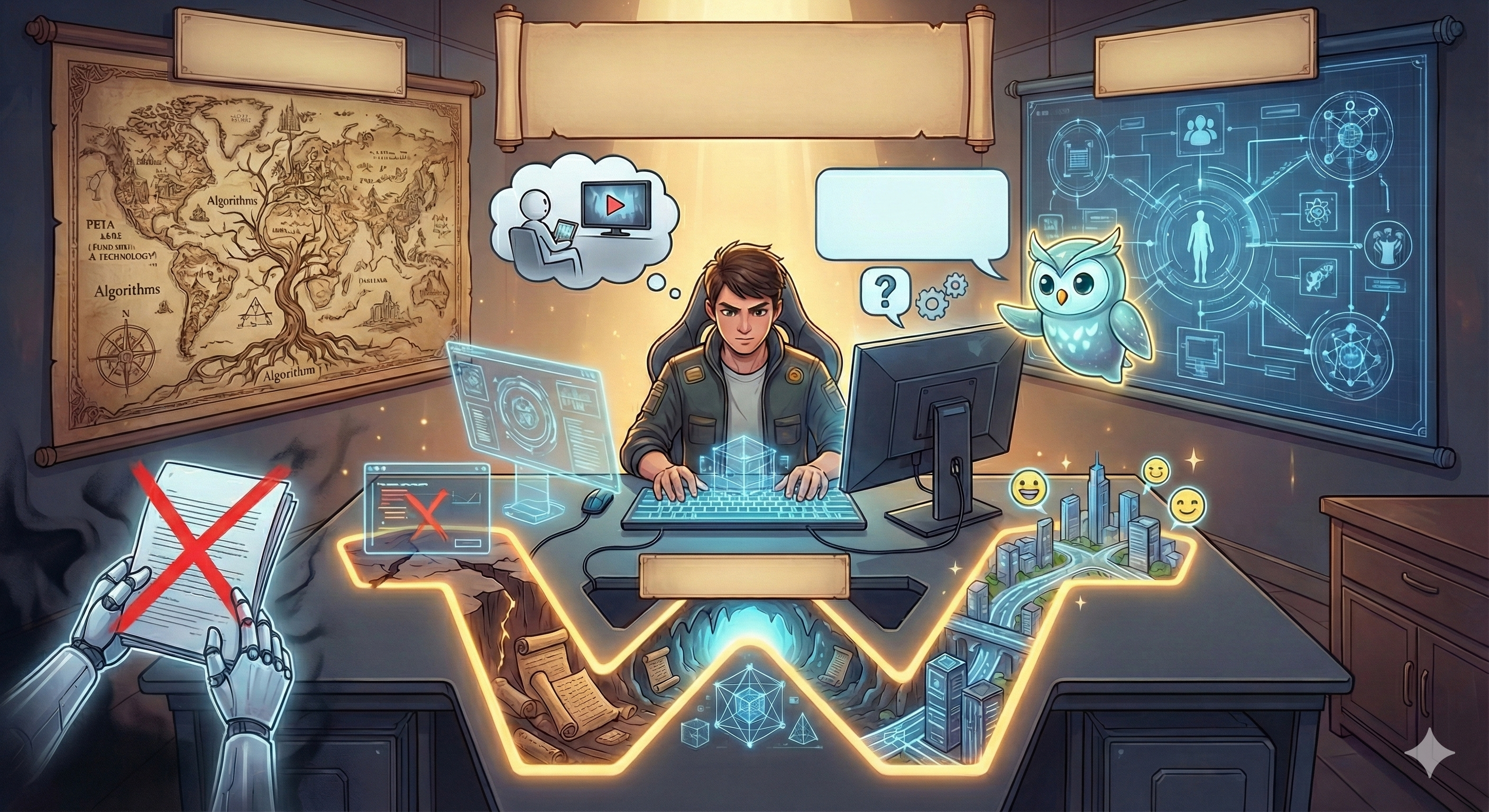 Inti Pengetahuan: “Dalam cerita pendidikan, AI tidak boleh menjadi ‘Ghostwriter’ yang menuliskan akhir cerita untuk kita. Ia harus menjadi ‘Mentor’ yang membiarkan sang Protagonis (Mahasiswa) menemukan kekuatannya sendiri.”